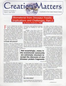 Creation Matters, Vol. 23, No. 2, March/April 2018, bi-monthly, free download of older issues or $43 for CRS Quarterly & Creation Matters, 12 pages. ISSN: 1094-6632