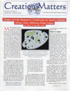 Creation Matters, Vol. 23, No. 5, September/October 2018, bi-monthly, free download of older issues or $43 for CRS Quarterly & Creation Matters, 12 pages. ISSN: 1094-6632