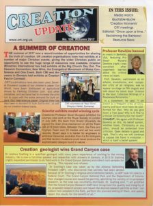 Creation Update, No. 106, Autumn 2017, quarterly, free by request, 4 pages. Creation Update in world libraries.