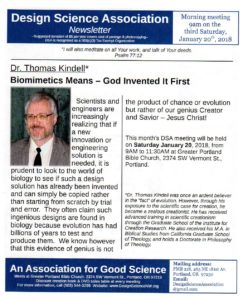 Biomimetics Means–God Invented It First by Dr. Thomas Kindell (meeting announcement). p. 1