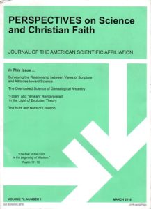 Perspectives on Science and Christian Faith, Vol. 70, No. 1, March 2018, quarterly, available by subscription $50 year or membership $85, 68 pages. ISSN: 0892-2675